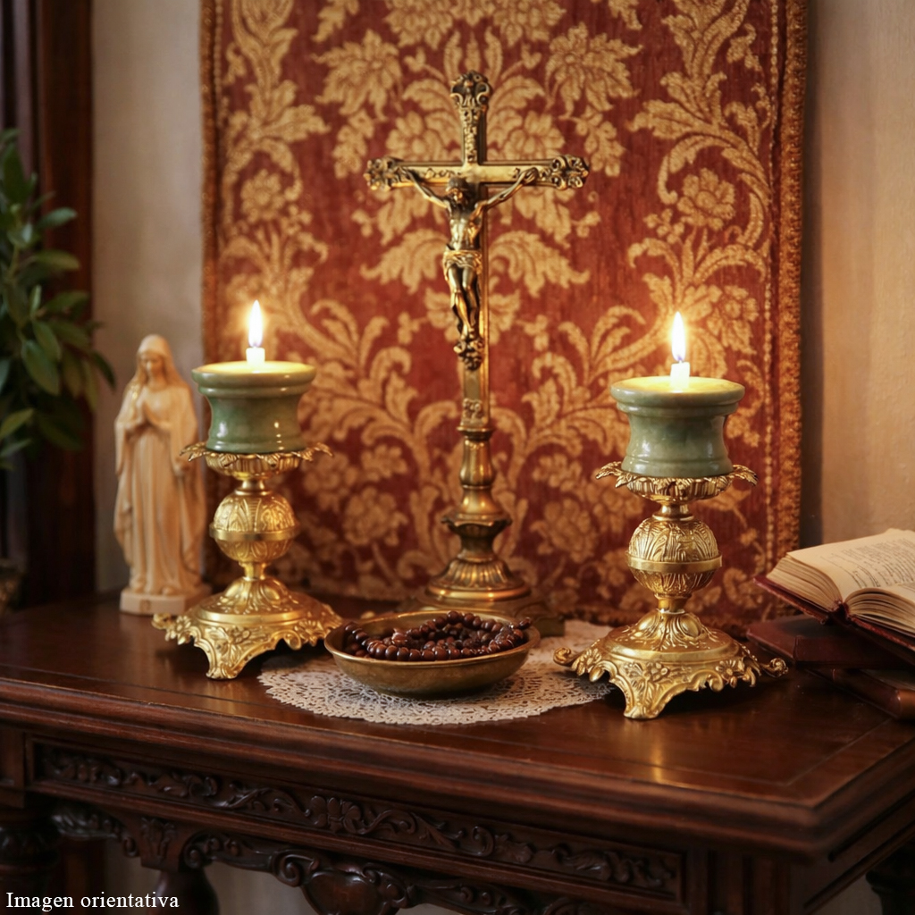 Etiquetas: candelabro, candelabros, dorado, metal, policromado, verde