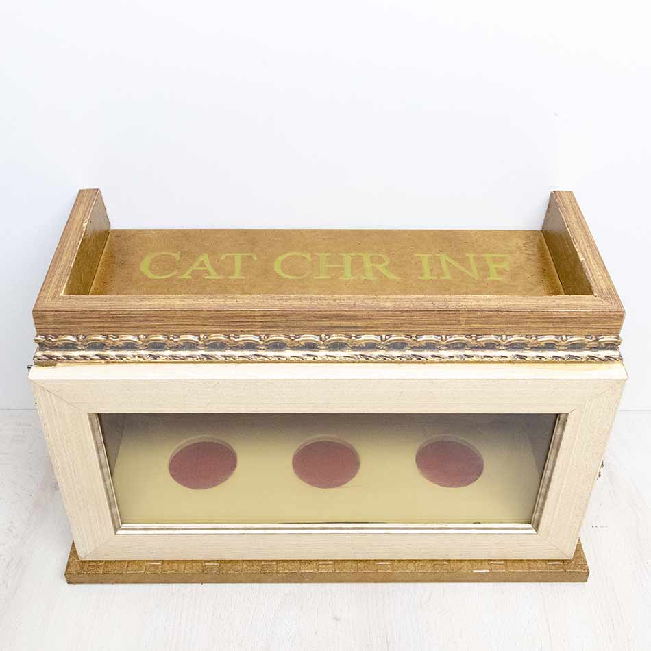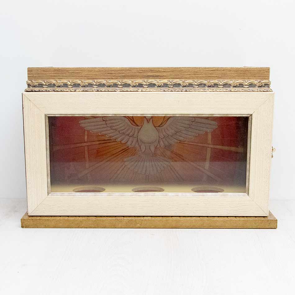 Estuche para los Santos Óleos policromado en ocre con lámina interior.