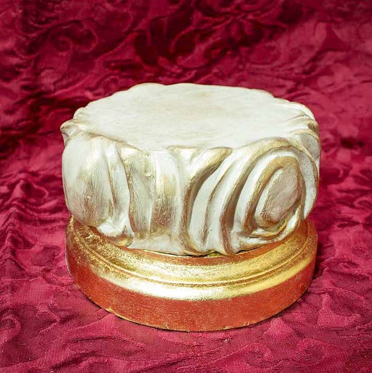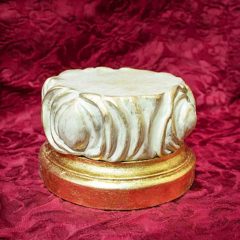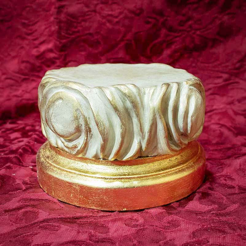 Peana con nube. Base inferior dorada en pan de oro bajo. Nube modelada a mano, policromada y pátina dorada.