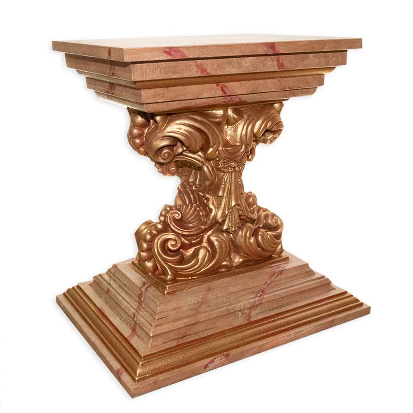 InicioPeanaPeana San Gerardo de Toul Peana San Gerardo de Toul250,00€ Medidas: abajo 29,5×22,5 cm arriba 25,5×18,5 cm alto 30 cm Peana con imitación a mármol y molduras y talla central con pátina dorada en imitación a antiguo. Comprar el producto SKU: P00451 Categoría: Peana Product ID: 46782 Descripción Descripción [wpforms id=»4″ title=»true» description=»true»] Productos relacionados Peana San Fernando 210,00€ Comprar el producto Peana San Agustín 345,00€ Comprar el producto Peana San Nicomedes 360,00€ Comprar el producto