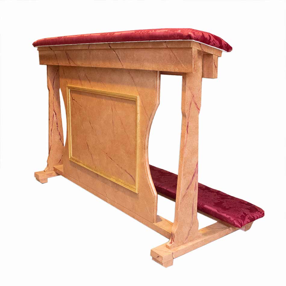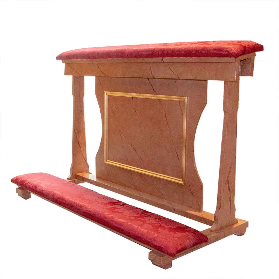 Reclinatorio – comulgatorio para dos personas. Imitación a mármol, pan de oro y cojines con tela de damasco.