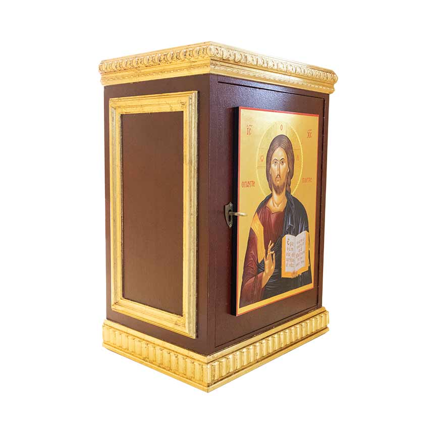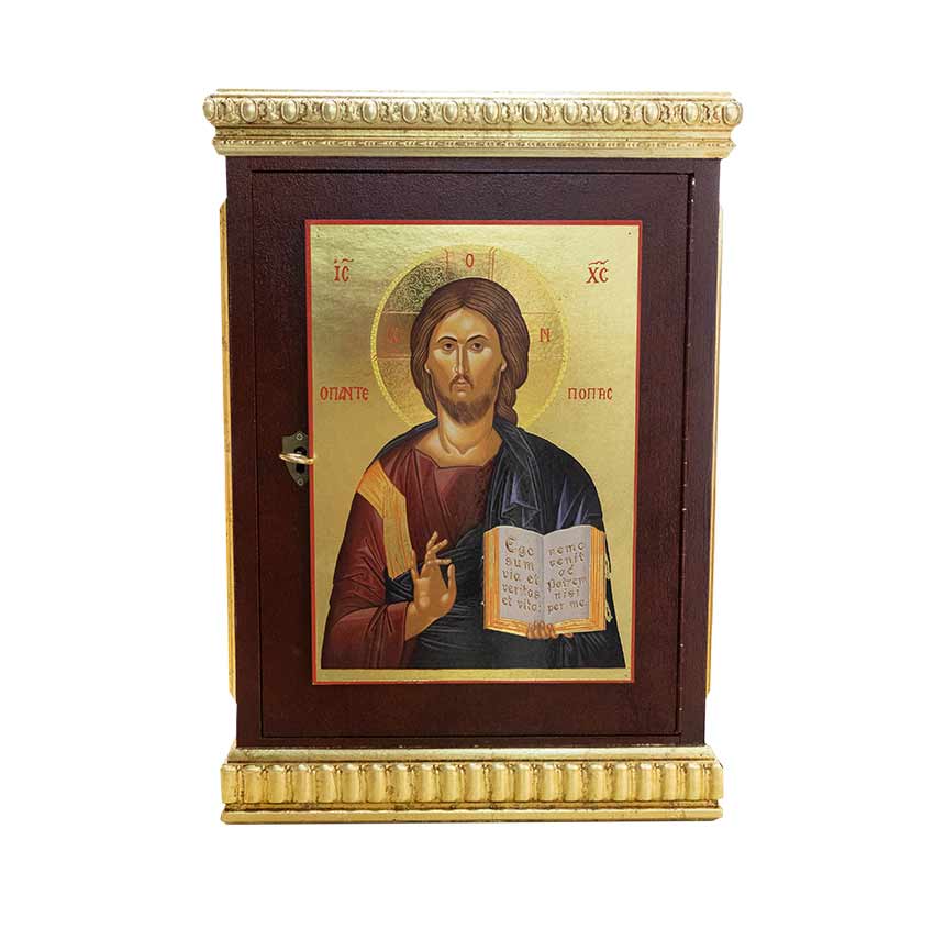 InicioMobiliario litúrgicoSagrarioSagrario con icono Pantocrátor Sagrario con icono Pantocrátor350,00€ Medidas: Exterior: 47x33x24,5 cm (alto x ancho x fondo) Interior: 37×27,5×21 cm (alto x ancho x fondo) Sagrario policromado y dorado en pan de oro, con icono estilo bizantino Cristo Pantocrátor. Sin existencias SKU: R00477 Categoría: Sagrario Etiquetas: icono, icono bizantino, pantocrátor, sagrario Product ID: 46891 Descripción Descripción [wpforms id=»4″ title=»true» description=»true»] Productos relacionados Sagrario con imitación a mármol y pan de oro 370,00€ Comprar el producto Sagrario imitación mármol marrón 1.200,00€ Comprar el producto Sagrario imitación mármol 950,00€ Comprar el producto