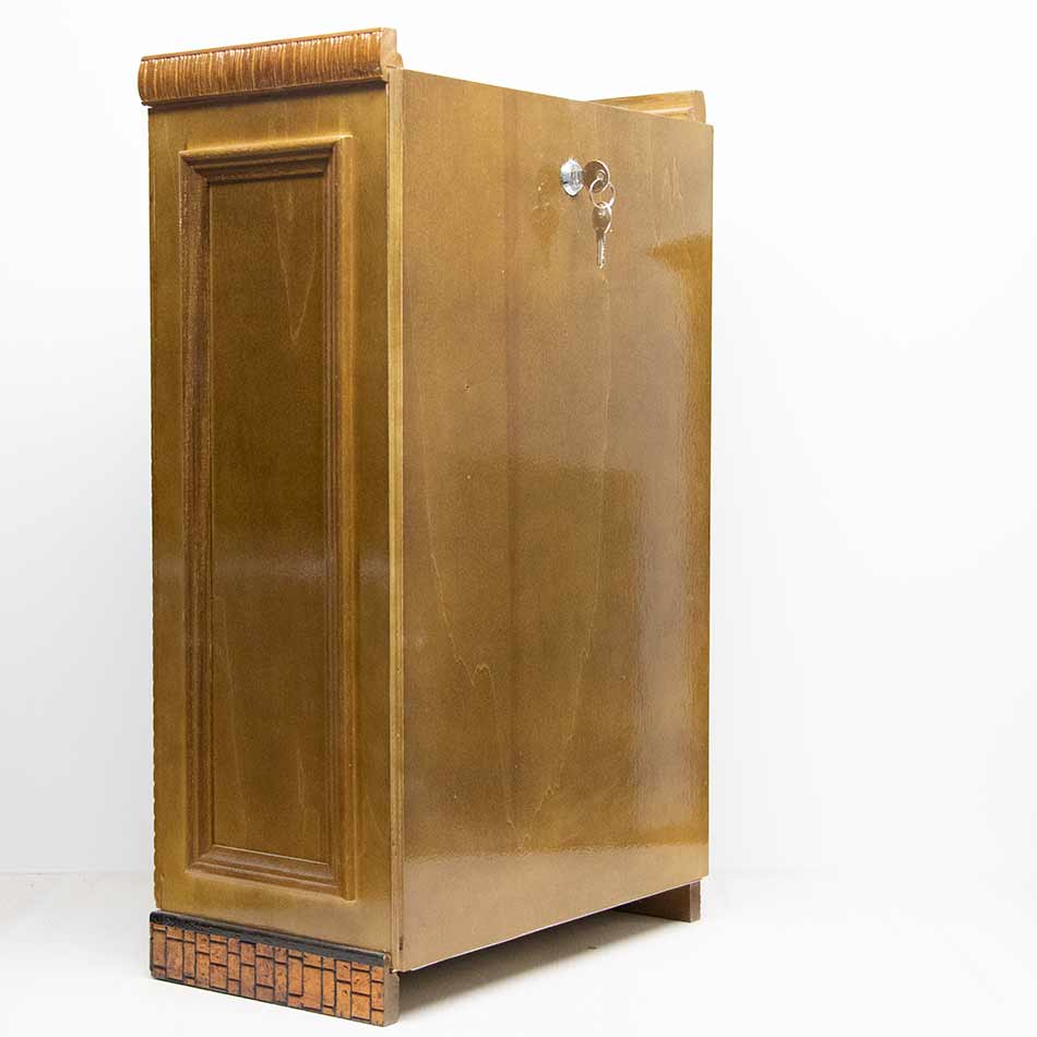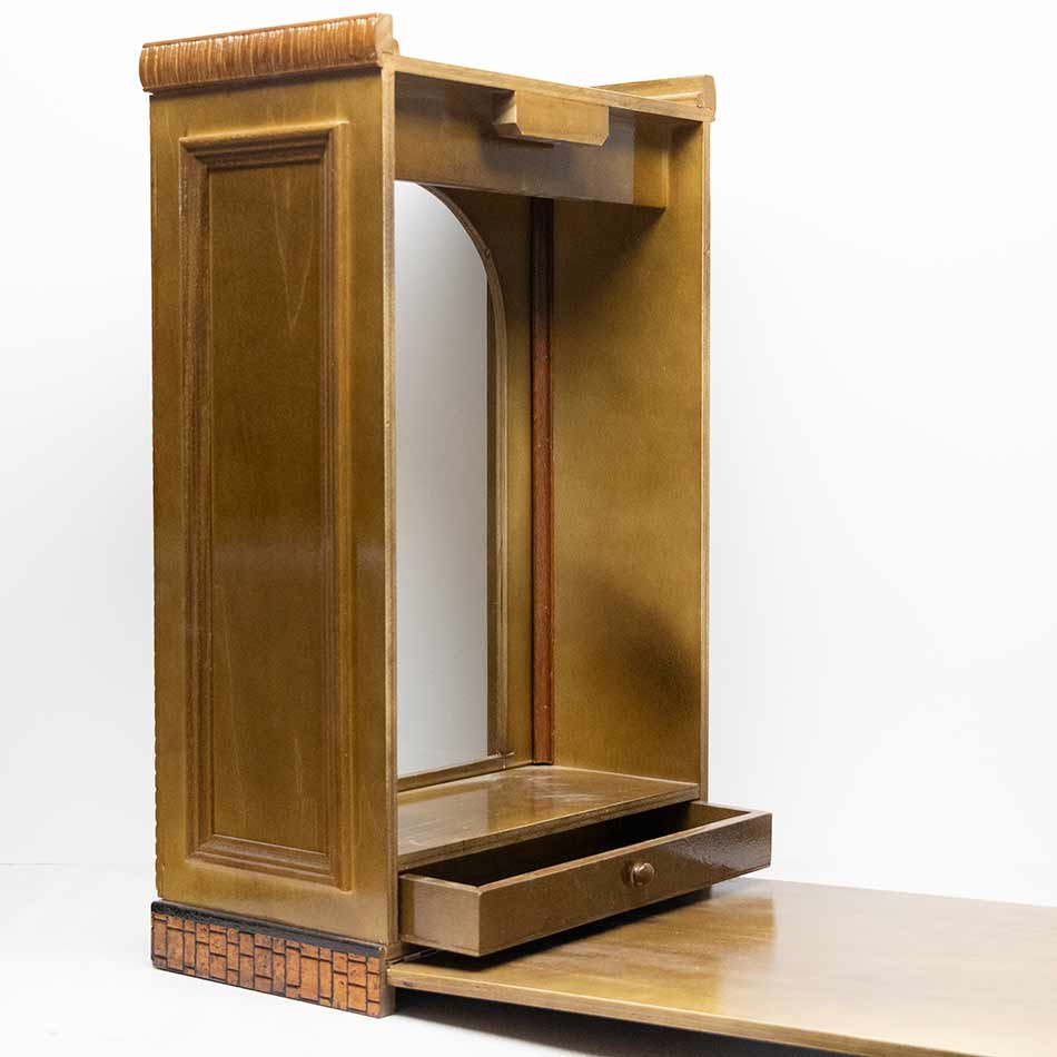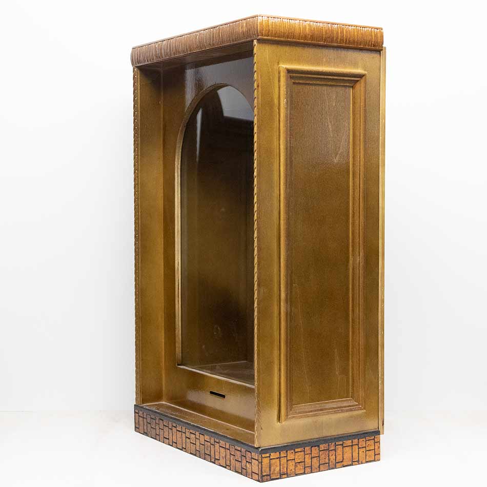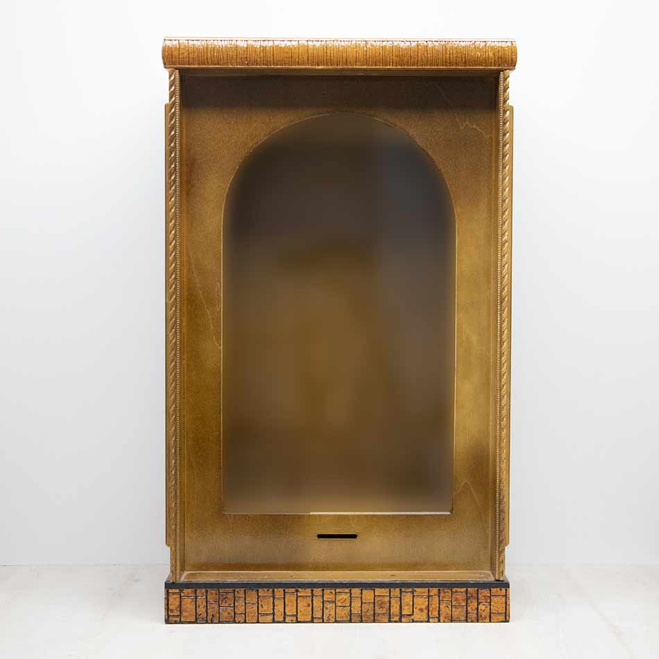 Urna barnizada con apertura por la parte posterior con cajón para donativos. Posibilidad de agregar asa para hacerla capilla domiciliaria.
